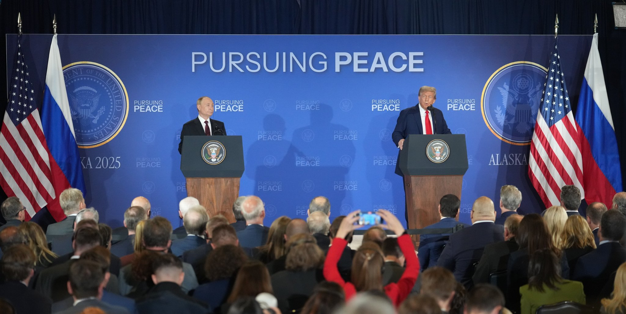 特朗普和普京15日在安克雷奇市埃尔门多夫-理查森联合军事基地举行近三小时的小范围会晤。在会后举行的联合记者会结束前,美俄领导人表示可能再次会晤。