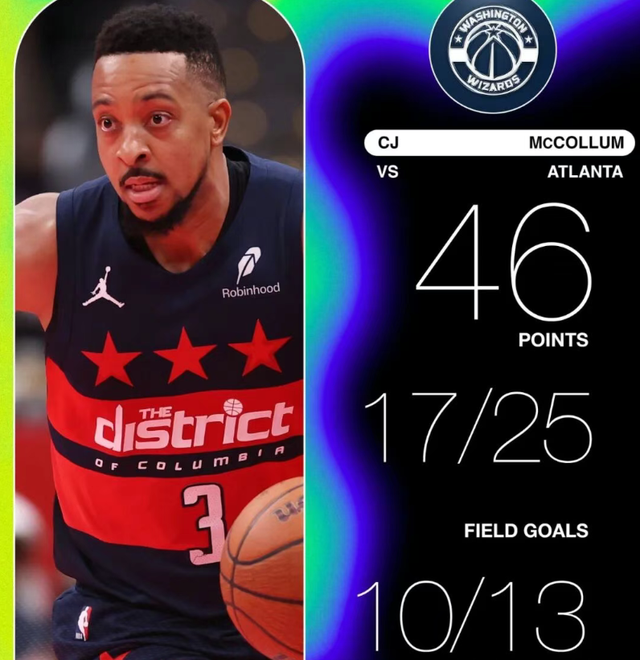 更意外的是,这是奇才队史NBA杯赛的第一场胜利,而在此前三年时间里,奇才前十战全部落败。而在这场值得载入队史的杯赛首胜中,麦科勒姆贡献了自己赛季至今表现最炸裂的一场个人秀。